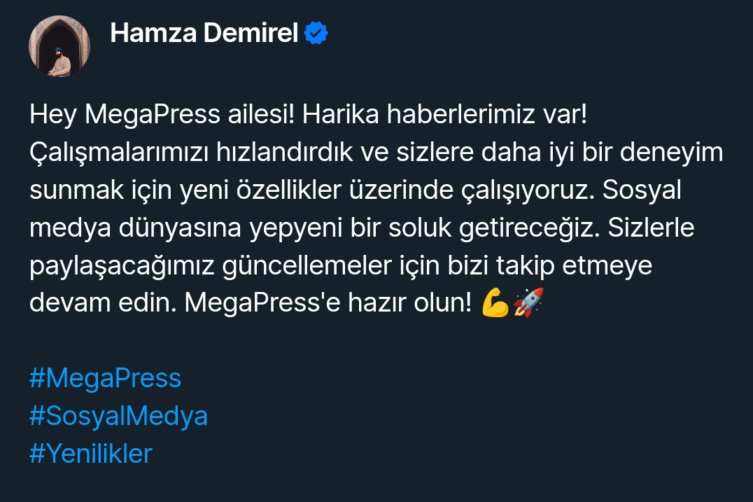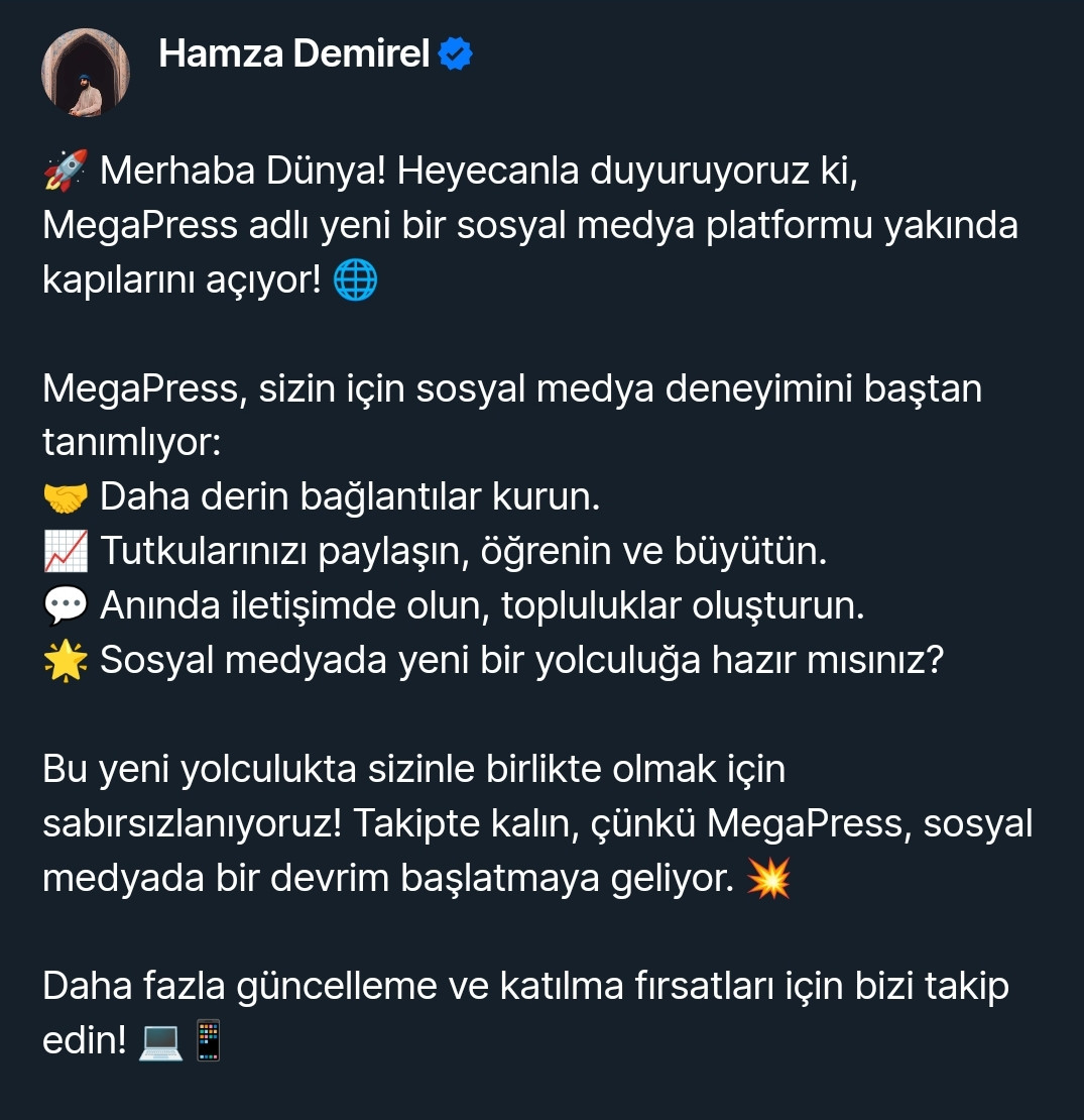 MegaPress üzerinde çalışmalara başladık. En kısa süre içerisinde hizmetinizde olacağız.